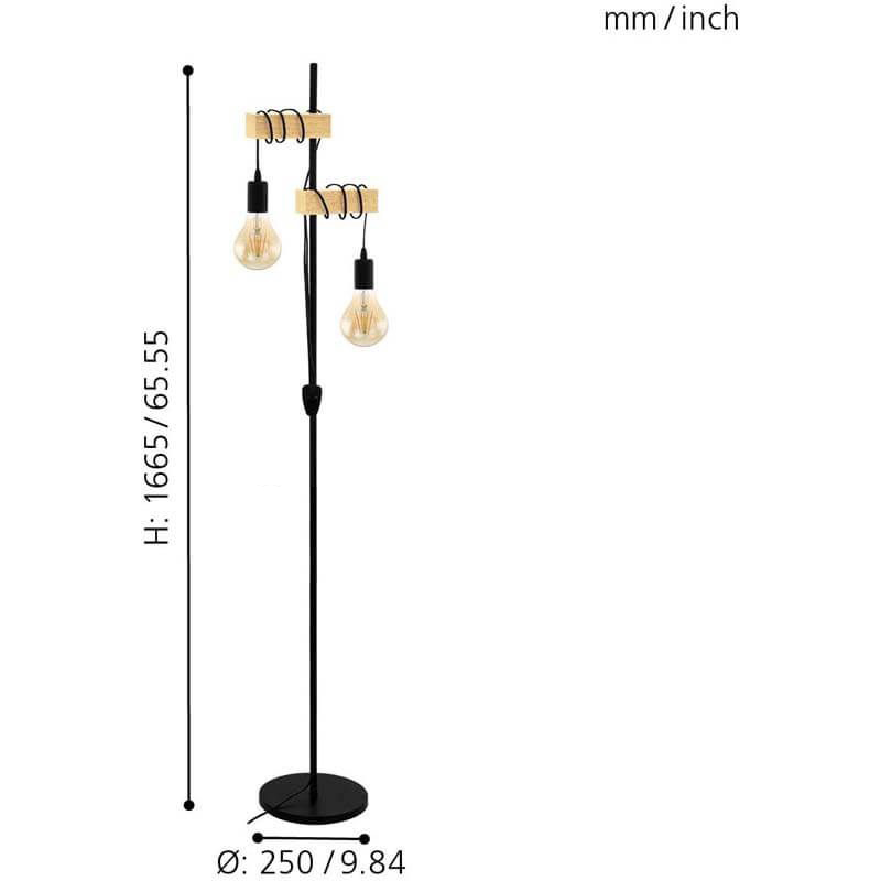 Lámpara de Pie Vintage TOWNSHEND de Madera y Acero 2 Luces E27 Regulables IP20 – Eglo