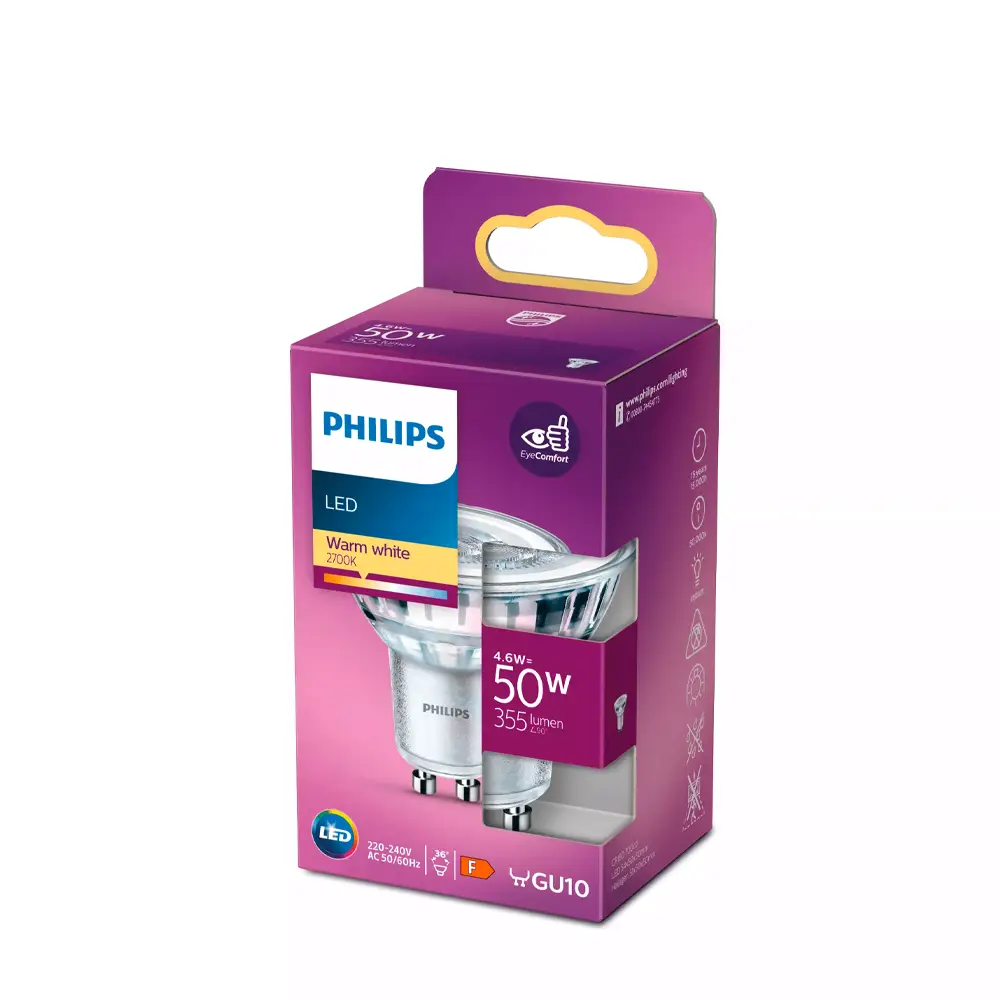 Bombilla Dicroica LED GU10 50W Equivalente 2700K Luz Cálida 36° No Regulable – Philips