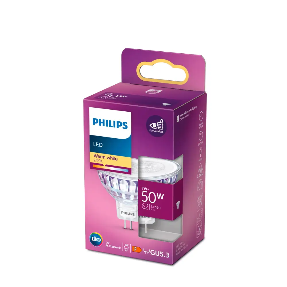 Bombilla Dicroica LED MR16 50W Equivalente 2700K Luz Cálida 36° No Regulable – Philips