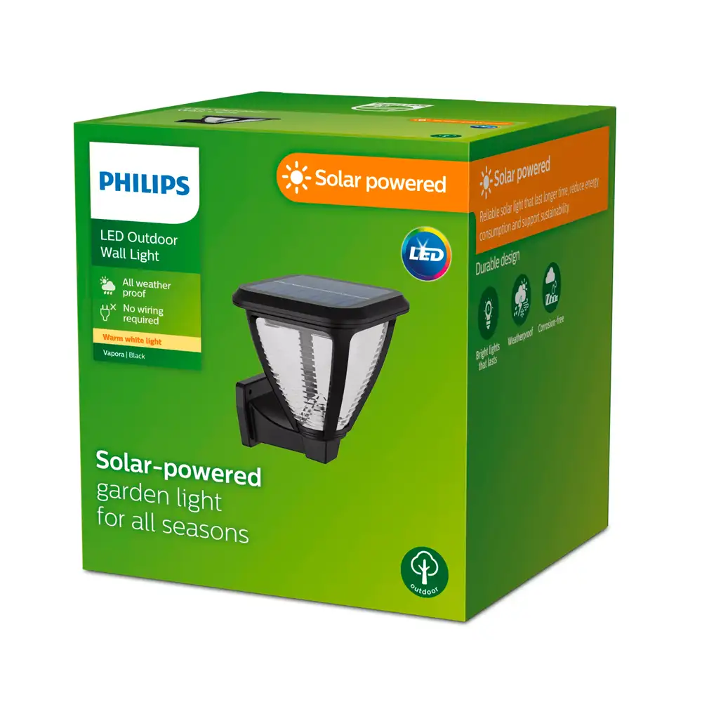 Aplique Vapora LED 1×1,5W 2700K Solar Negro IP44 – Philips