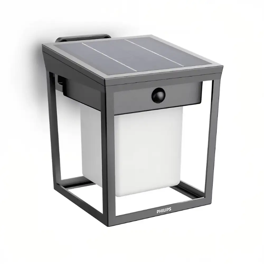 Aplique Ezra LED 1×1,8W 3000K Solar con Sensor Ultra Eficiente Negro IP44 – Philips