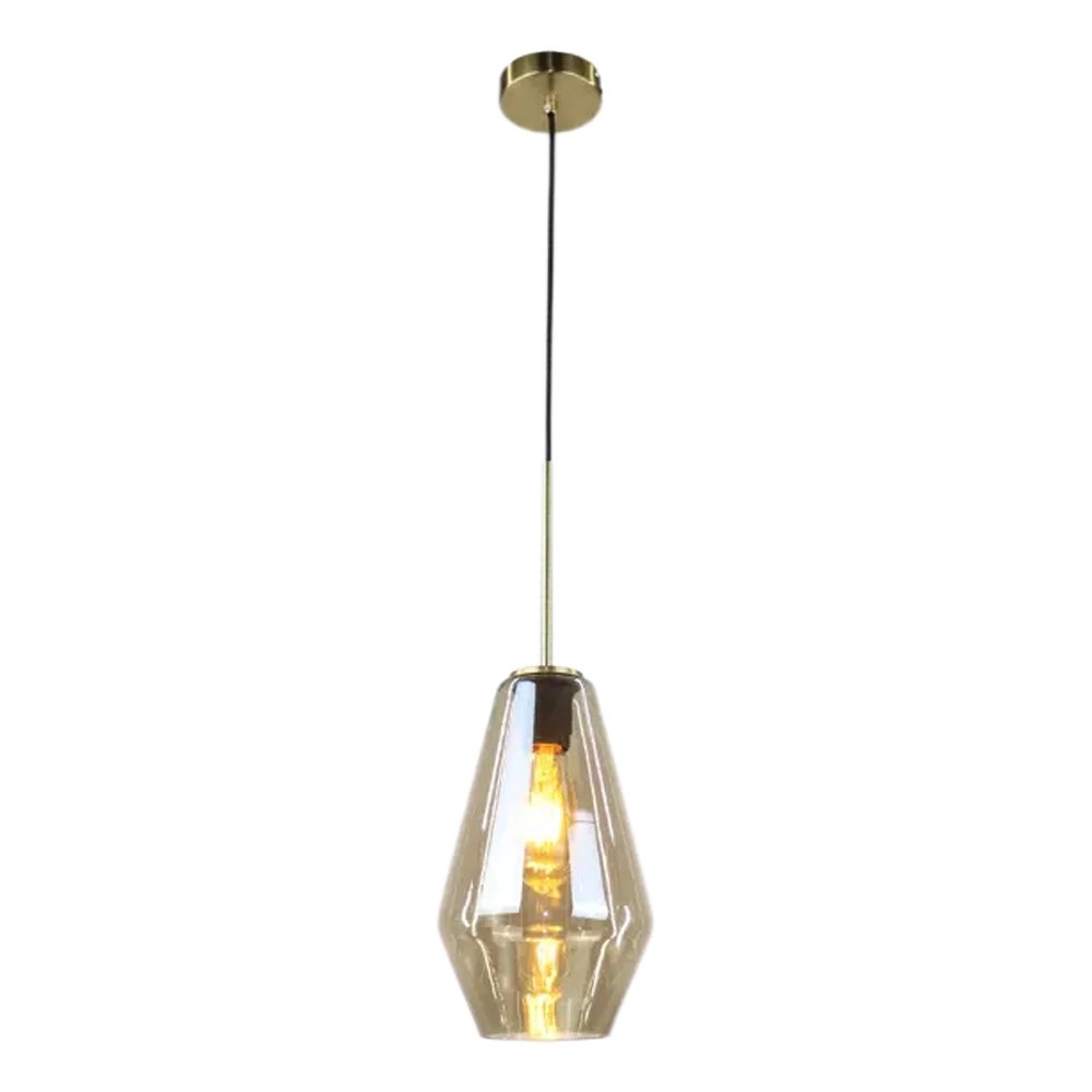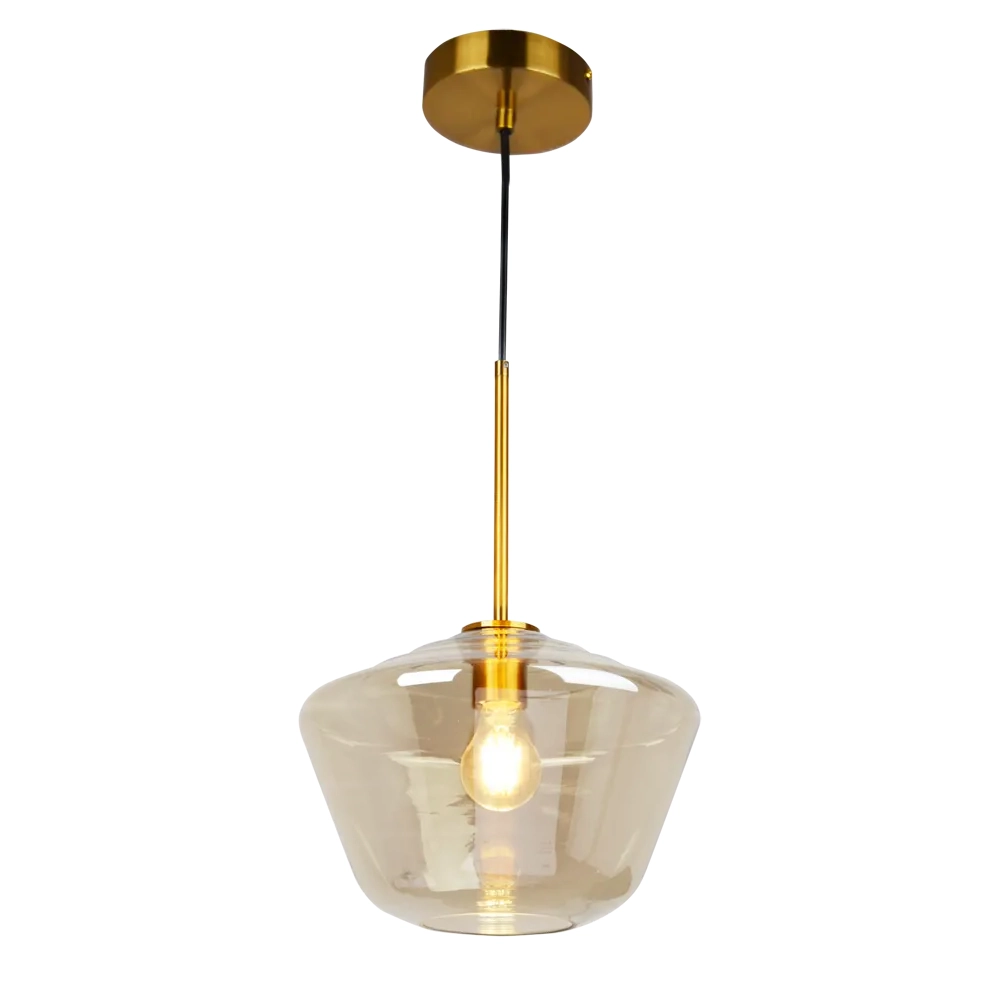 Lámpara Colgante Dorada 1A 1 Luz con Cristal Ámbar E27 para Interior IP20 – Campiluz