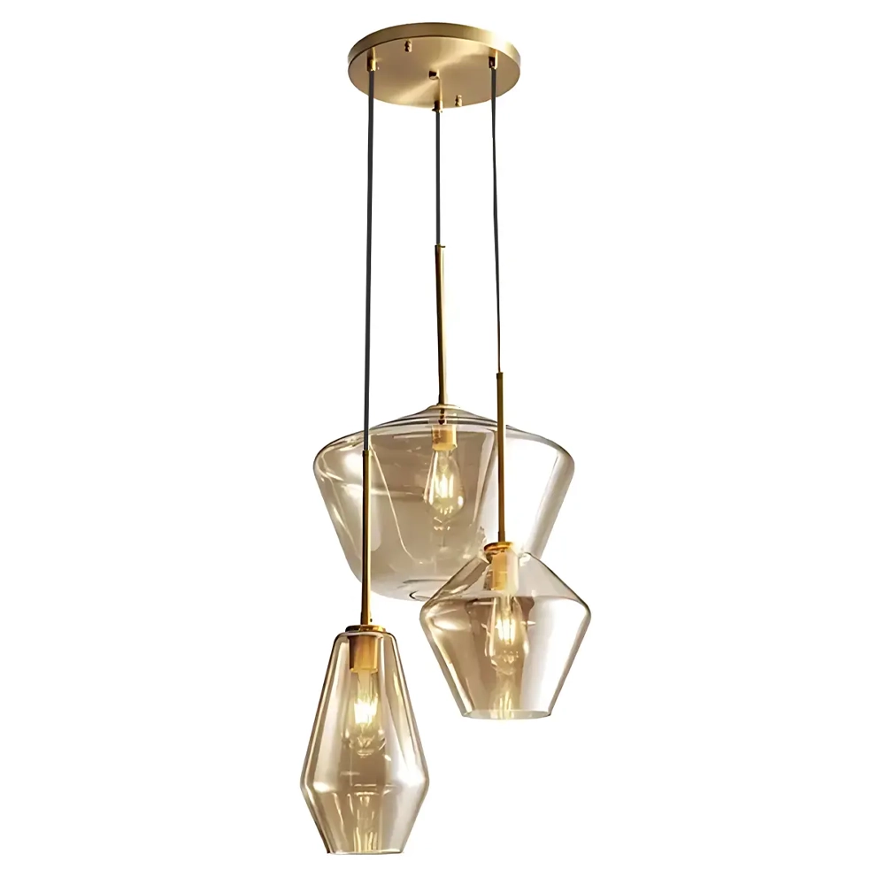 Lámpara Colgante Dorada 3 Luces con Cristal Ámbar E27 para Interior IP20 – Campiluz