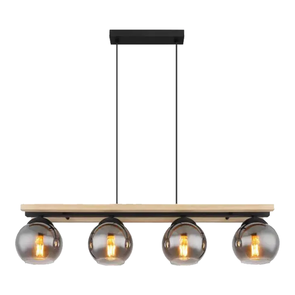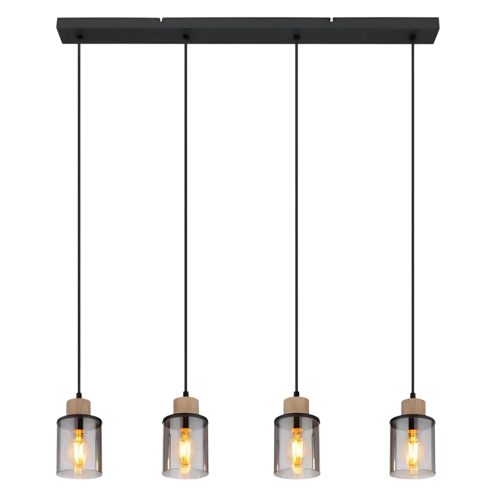 Lámpara Colgante Lineal de Madera y Negro 4 Luces E14 Cristal Fumé IP20 Interior – Campiluz