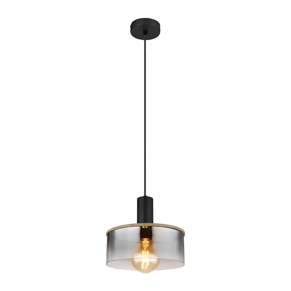 Lámpara Colgante Negra con Cristal Fumé Cilíndrico Ancho E27 para Interior IP20 – Campiluz