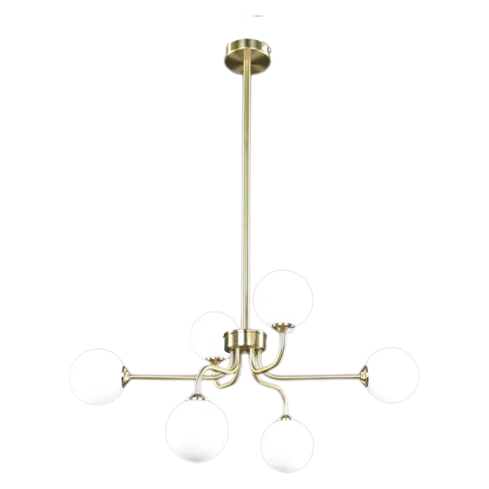 Lámpara de Techo Dorada 6 Luces Oro Latón con Bola Opal G9 Interior IP20 – Campiluz