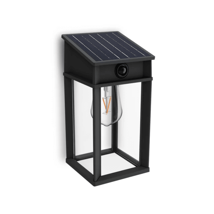 Aplique Ezra LED 1×1,8W 3000K Solar con Sensor Ultra Eficiente Negro IP44 – Philips
