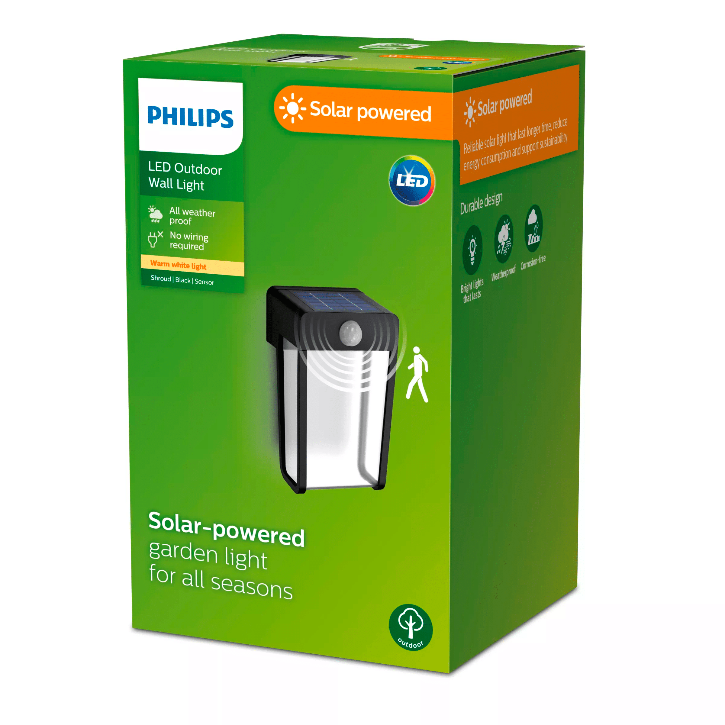 Aplique Shroud M LED 1×2,3W 2700K Solar Negro IP44 – Philips