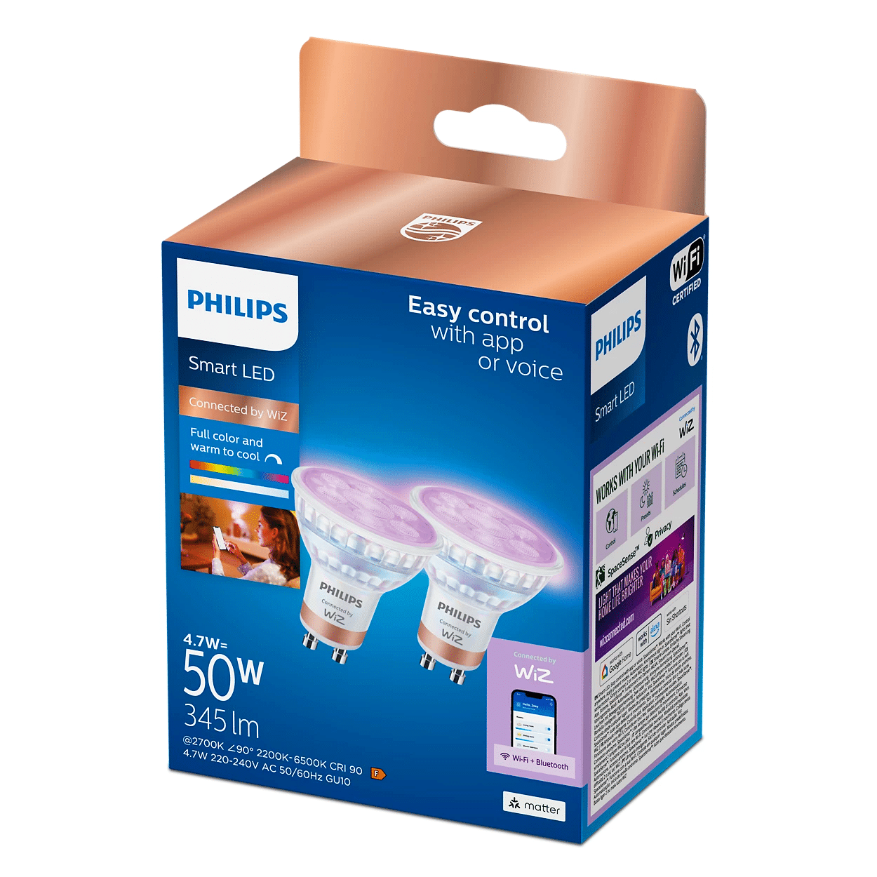 Pack 2 Bombillas LED GU10 Philips WiZ RGB 2200K–6500K 4,7W
