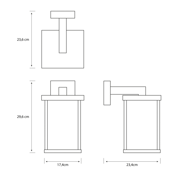 Con certificación IP44, el aplique está protegido frente a humedad y salpicaduras, garantizando un rendimiento fiable en espacios exteriores. Sus dimensiones de 23,6 × 17,4 × 29,6 cm lo convierten en una pieza versátil y fácil de instalar.