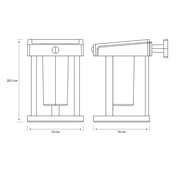Fabricado en plástico negro con difusor transparente, es ideal para exteriores gracias a su protección IP44. Sus medidas de 19 × 14 × 20,5 cm lo hacen perfecto para entradas, terrazas, patios o pasillos exteriores.