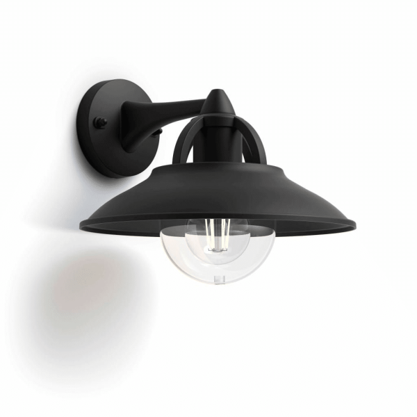 Aplique Cormorant Philips en color negro con casquillo E27 y protección IP44. Diseño decorativo para exterior, compatible con bombillas hasta 42W.