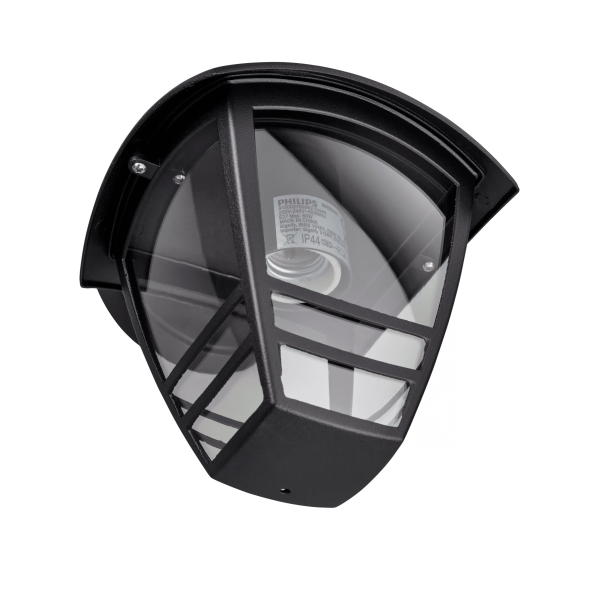 Aplique Creek Down Philips en color negro con casquillo E27 y diseño clásico para exterior. Apto para bombillas hasta 60W y protegido con IP44.