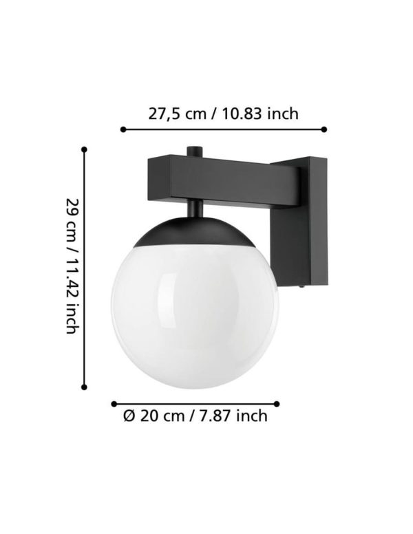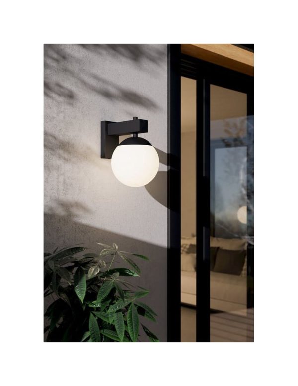 Aplique de Exterior Bufalata Negro con Globo Blanco E27 IP44 – Eglo