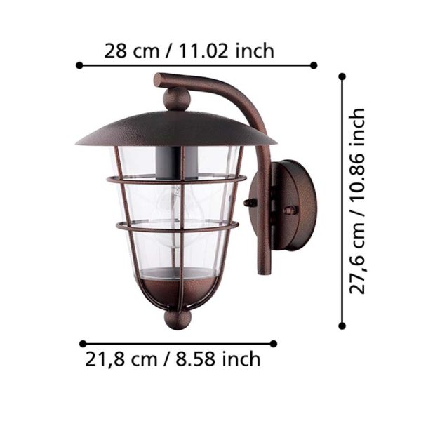 El aplique de exterior Pulfero 1 en color marrón de Eglo Iluminación ofrece un diseño clásico tipo farolillo, con protección IP44 y casquillo E27, ideal para iluminar fachadas y espacios exteriores con estilo rústico.