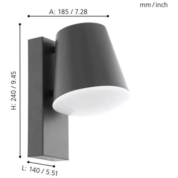 El aplique de pared exterior Caldiero de Eglo Iluminación está diseñado para aportar una iluminación funcional y decorativa en espacios al aire libre, gracias a su forma de farola moderna que proyecta la luz de manera homogénea hacia abajo. Su estructura limpia y estilizada encaja fácilmente en fachadas, muros y paredes exteriores donde se busca una estética actual y ordenada. Fabricado en acero resistente, este aplique admite una bombilla con casquillo E27 no incluida, permitiendo elegir el tipo de luz más adecuado según el ambiente deseado. La pantalla de plástico blanco ayuda a difuminar la luz, logrando una iluminación equilibrada que resulta cómoda tanto para zonas de tránsito como para accesos principales. Con un grado de protección IP44, el aplique está preparado para resistir salpicaduras de agua y polvo, lo que lo convierte en una opción segura para exteriores. Su instalación en pared es sencilla y su diseño está pensado para iluminar escaleras, entradas, jardines y fachadas con una solución duradera y visualmente coherente.Especificaciones técnicas