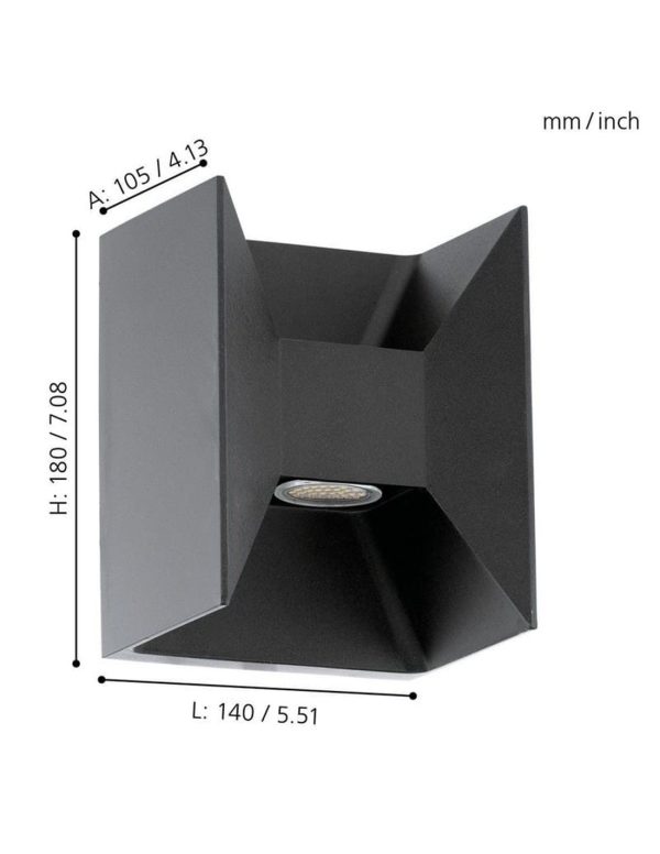 Aplique de Pared LED MORINO Cuadrado Negro Luz Arriba y Abajo 3000K IP44 – Eglo