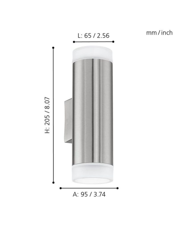 Aplique de Pared RIGA-LED Satinado Cilíndrico con Montaje en Esquina 4000K IP54 – Eglo
