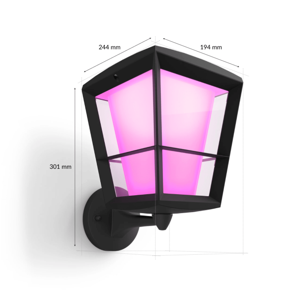 Aplique de exterior Econic Up Philips HUE en negro, 15W con luz blanca y de color. IP44, LED integrado y control inteligente mediante HUE Bridge.