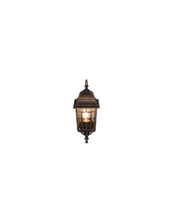 Aplique exterior clásico tipo farol con acabado óxido, casquillo E27 y diseño decorativo