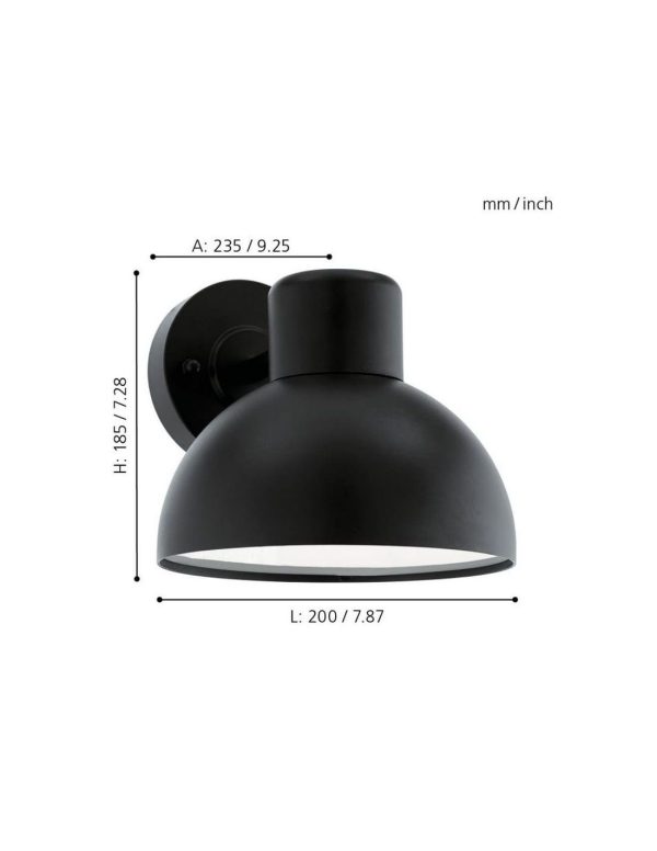 Aplique Exterior ENTRIMO Negro con Casquillo E27 IP44 – Eglo