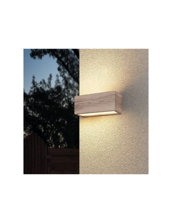Aplique exterior decorativo con efecto madera, luz bidireccional y protección IP44