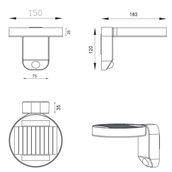 Sus dimensiones compactas —15 cm de ancho y 12 cm de alto— lo hacen fácil de instalar en cualquier pared exterior. Una solución moderna, eficiente y sostenible para iluminar tu hogar.