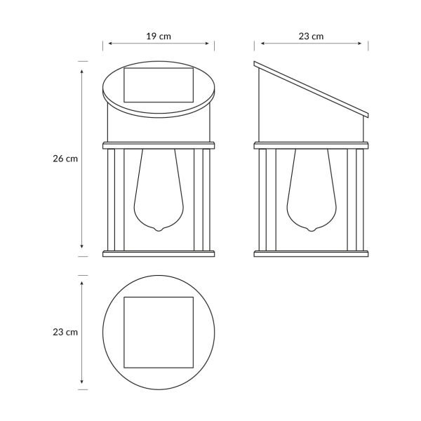 Fabricado en metal y plástico negro, sus medidas 19 × 23 × 26 cm y la protección IP44 garantizan durabilidad y resistencia en ambientes exteriores.
