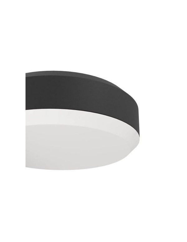 Iluminación LED exterior uniforme de 850 lúmenes con luz cálida 3000K, diseño redondo negro, bombilla incluida y protección IP54 para entradas, terrazas y jardines.