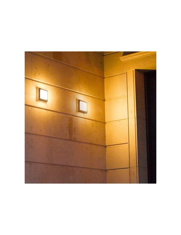 Con diseño cuadrado y montaje en pared o techo, este modelo ofrece 330 lúmenes, luz cálida de 3000K y protección IP54, ideal para iluminar exteriores modernos con eficiencia.