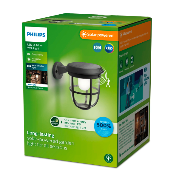 Aplique Radii LED 1×1,3W 3000K Solar Negro IP44 – Philips