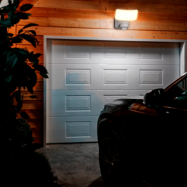 Con protección IP44 y acabado en color blanco, es ideal para entradas, terrazas y fachadas. Sus medidas son 17 × 15 × 16 cm y su construcción en plástico resistente asegura durabilidad.