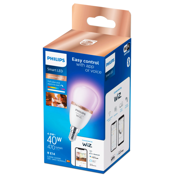 Bombilla Esférica LED E14 Philips WiZ RGB 2200K–6500K 4,9W Mate