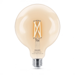 Esta bombilla Philips Smart LED WiZ G95 ofrece 1055 lúmenes y un amplio rango de blancos entre 2200K y 6500K, además de millones de colores RGB. Su diseño globo la convierte en una opción perfecta para luminarias visibles, aportando una iluminación envolvente y personalizable.