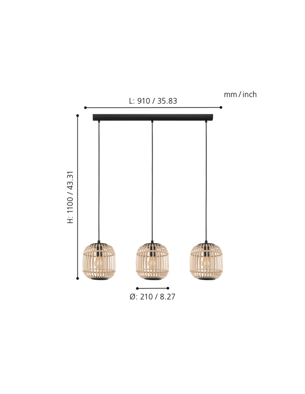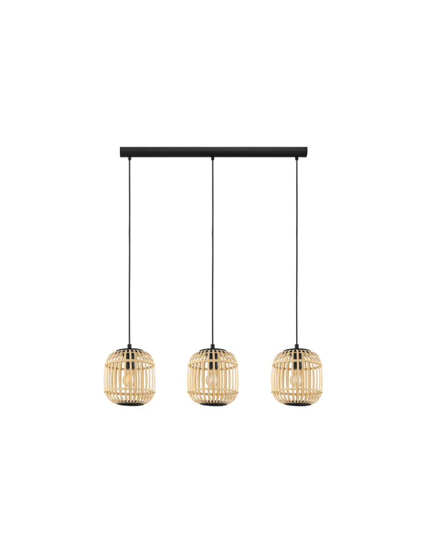 Lámpara Colgante BORDESLEY de Techo con 3 Pantallas de Bambú E27 IP20 – Eglo