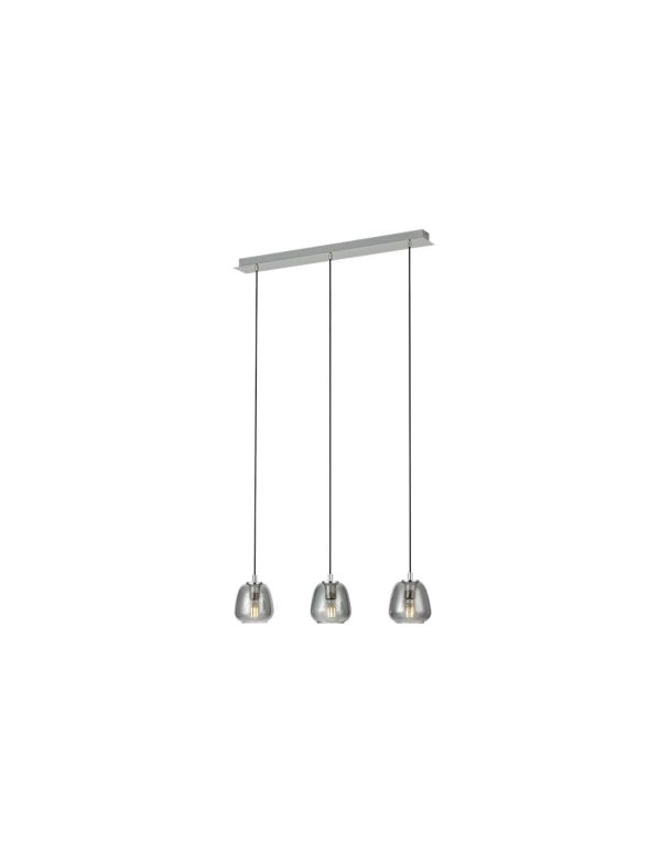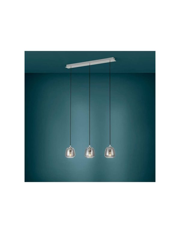 Esta lámpara colgante de techo de tres luces es una opción ideal para quienes buscan una iluminación decorativa con presencia y estilo. Cada punto de luz cuenta con una pantalla de cristal vaporizado en color negro, que suaviza la luz y crea un ambiente cálido y acogedor. Funciona con tres bombillas E27 (no incluidas), permitiendo personalizar la intensidad y el tono de la iluminación según las necesidades del espacio. Su diseño combina el protagonismo del vidrio oscuro con detalles en acero negro, logrando una estética equilibrada entre lo clásico y lo contemporáneo. El formato de tres focos permite una distribución uniforme de la luz, siendo perfecto para instalar sobre mesas de comedor, salones amplios o mostradores de espacios comerciales. Para potenciar su carácter decorativo, se recomienda el uso de bombillas LED de filamento en tono cálido. Diseñada exclusivamente para uso interior, dispone de protección IP20 y una altura regulable de hasta 150 cm, lo que facilita su adaptación a diferentes alturas de techo. Es una excelente elección de lámpara colgante de cristal para quienes buscan una iluminación elegante, funcional y con un fuerte impacto visual en el hogar o negocio.Especificaciones técnicas