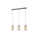 Esta lámpara colgante de techo de cinco luces es una pieza decorativa pensada para destacar en espacios amplios. Sus pantallas de cristal vaporizado en color negro aportan una iluminación suave y elegante, creando un ambiente acogedor y con carácter. Funciona con cinco bombillas E27 (no incluidas), lo que permite adaptar la intensidad y el tono de luz a las necesidades de cada estancia. El diseño presenta un florón redondo del que descienden los cinco puntos de luz a distintas alturas, generando un efecto visual dinámico y decorativo. La combinación de cristal oscuro con detalles en acero negro logra un estilo equilibrado entre lo clásico y lo contemporáneo. Es ideal para instalar sobre mesas de comedor grandes, salones amplios, recibidores o espacios comerciales como restaurantes y tiendas. Diseñada para uso interior, cuenta con protección IP20 y una altura máxima de 150 cm, adecuada para techos estándar. Se recomienda utilizar bombillas LED de filamento en tono cálido para realzar el efecto decorativo del cristal. Es una excelente opción de lámpara colgante de cristal de cinco luces para quienes buscan una iluminación elegante, protagonista y de alto impacto visual.Especificaciones técnicas
