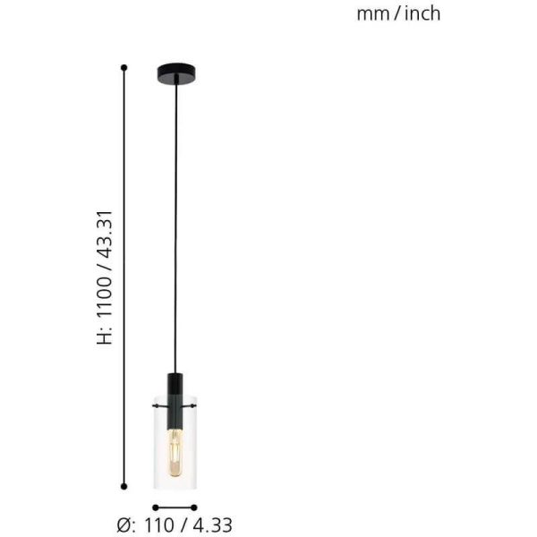 Esta lámpara colgante de techo de una luz destaca por su diseño equilibrado entre lo clásico y lo contemporáneo. Incorpora una pantalla cilíndrica de vidrio transparente que deja la bombilla visible, aportando ligereza visual y una iluminación decorativa muy atractiva. Funciona con bombilla E27 (no incluida), lo que permite personalizar tanto la intensidad como el tono de luz según el ambiente deseado. Su estructura combina el protagonismo del cristal transparente con detalles en acero negro, logrando una estética elegante y atemporal. Es una opción ideal para colocar sobre mesas de comedor, barras, islas de cocina o mostradores comerciales, ya que su formato individual permite distribuir varios puntos de luz y crear composiciones personalizadas. Para realzar su carácter decorativo, se recomienda el uso de bombillas LED de filamento en tono cálido. Diseñada exclusivamente para uso interior, cuenta con protección IP20 y una altura aproximada de 110 cm, adecuada para techos estándar. Su diámetro compacto de 11 cm la hace perfecta para espacios donde se busca una iluminación elegante sin recargar el entorno. Es una excelente elección de lámpara colgante de cristal para hogares y espacios comerciales que buscan diseño, versatilidad y un toque sofisticado.Especificaciones técnicas