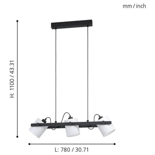 Lámpara Colgante HORNWOOD Blanca y Negra de Estilo Nórdico 3xE27 IP20 – Eglo