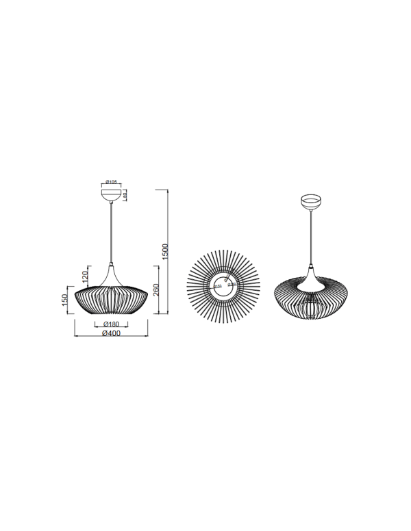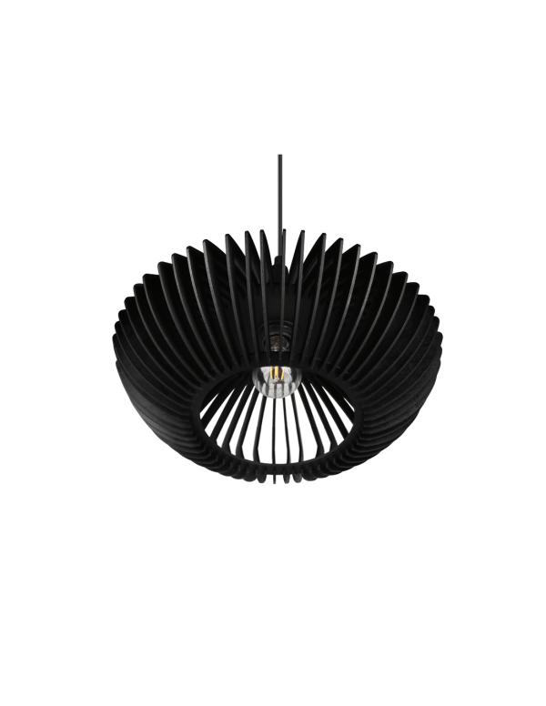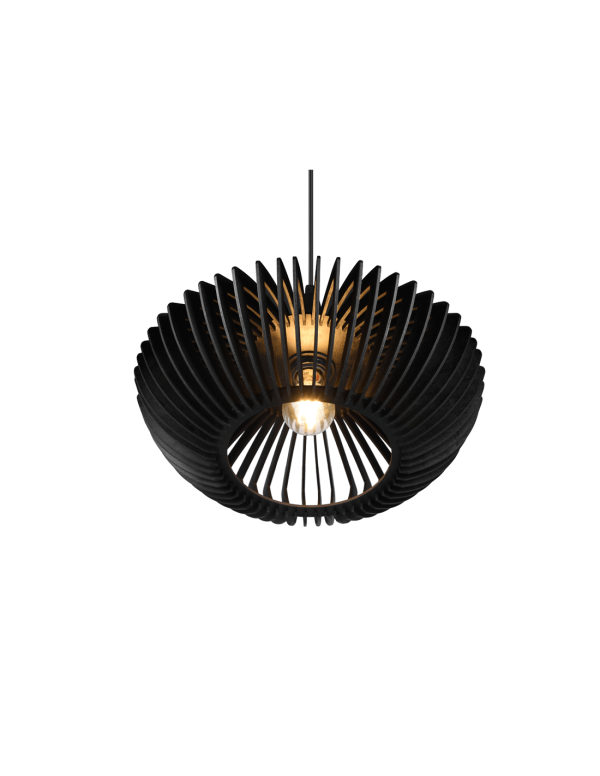La lámpara colgante Colino destaca por su diseño moderno que combina madera natural y metal en acabado negro, creando una pieza visualmente llamativa capaz de transformar cualquier estancia. Su pantalla de 40 cm de diámetro y su altura total de 150 cm la convierten en un elemento decorativo ideal para salones, comedores, dormitorios o pasillos.