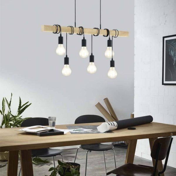 Lámpara Colgante TOWNSHEND Vintage de Madera y Acero 6xE27 100 cm IP20 – Eglo