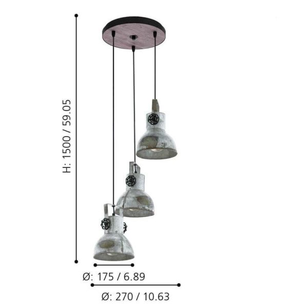 Lámpara Colgante Vintage BARNSTAPLE de Madera y Acero 3xE27 IP20 – Eglo