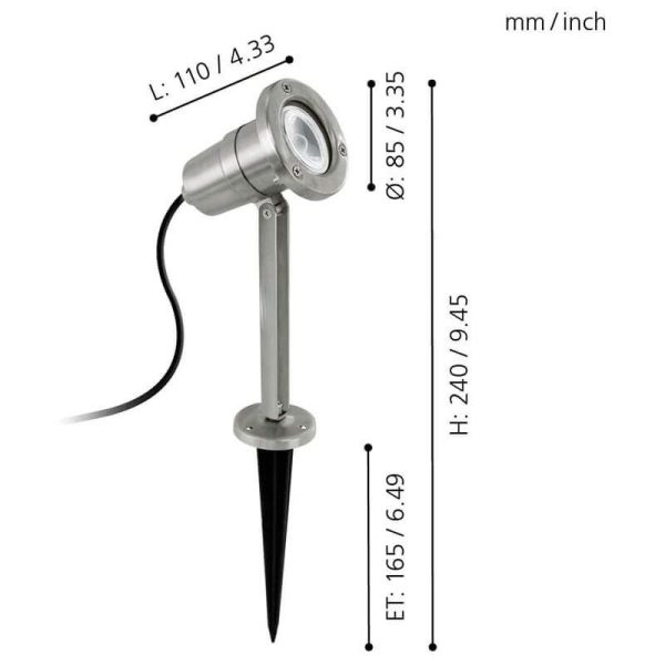 Lámpara de Estaca Exterior NEMA Plateada Orientable GU10 IP54 – Eglo