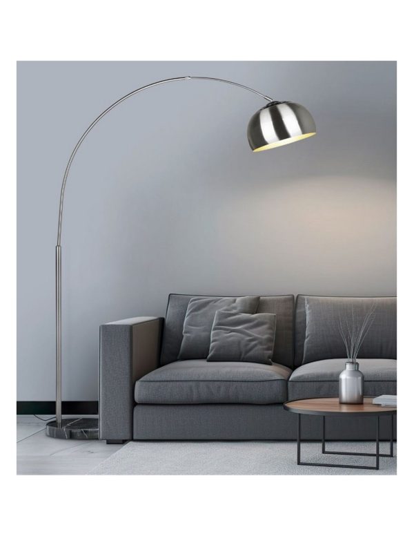 Fabricada en metal de alta calidad, esta lámpara funciona con una bombilla E27 de hasta 60W (no incluida), permitiendo elegir la tonalidad y luminosidad más adecuada para cada estancia. La base de mármol aporta estabilidad y un atractivo contraste visual, mientras que su interruptor de pie ofrece un uso cómodo y práctico. Con una altura total de 200 cm y un arco de 172,5 cm, la lámpara ilumina de manera eficaz sin ocupar espacio central, siendo perfecta para colocar junto a sofás, butacas o mesas auxiliares.