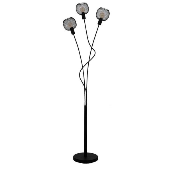 Lámpara de Pie Industrial WRINGTON 1 con Rejilla Negra 3xE14 IP20 – Eglo