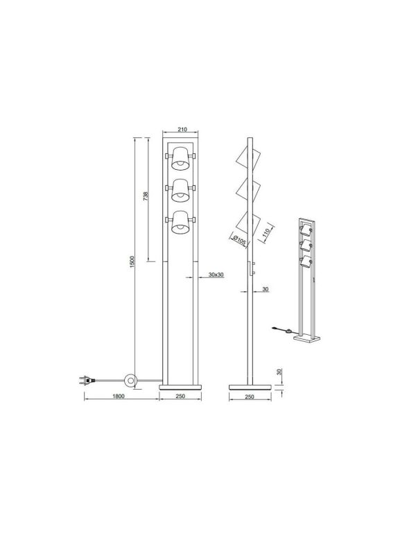 Su diseño en metal y madera ofrece estilo contemporáneo, mientras sus tres luces con casquillo E14 proporcionan iluminación eficiente. Incluye interruptor de pie práctico. Ideal para interiores IP20.