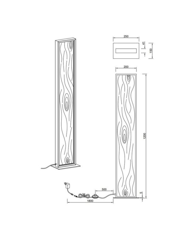 Su diseño en madera natural aporta calidez y modernidad. Con 35W 4100lm y luz cálida 3000K, ofrece iluminación regulable mediante interruptor de pie. Ideal para interiores IP20.