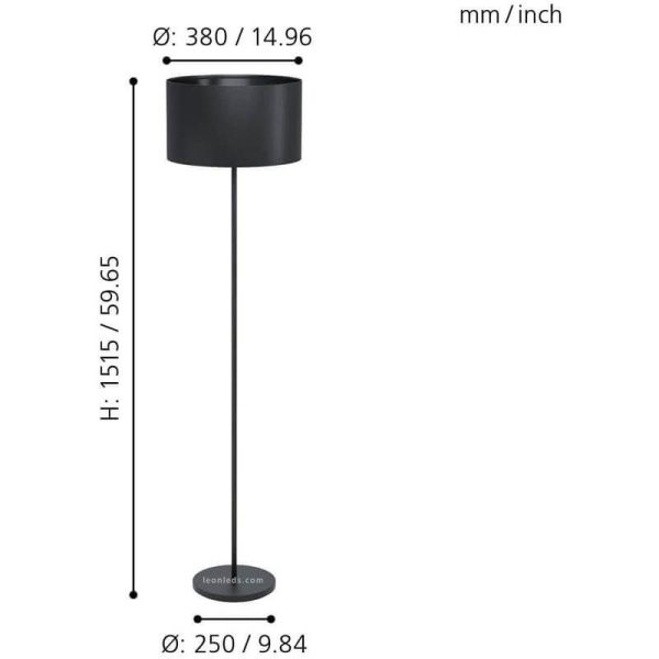 Lámpara de Pie MASERLO 1 Negra con Pantalla Textil E27 IP20 – Eglo