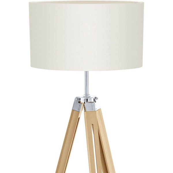 Lámpara de Pie Nórdica LANTADA de Madera con Pantalla Textil Blanca E27 – Eglo