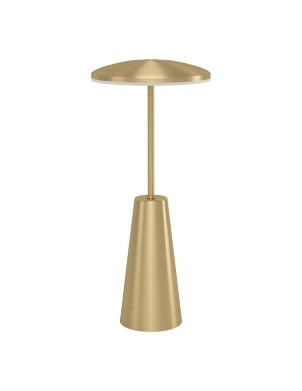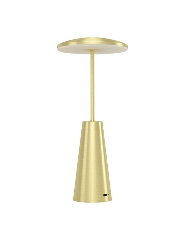 Iluminación LED recargable con acabado en latón cepillado y temperatura de color ajustable, resistente IP54, perfecta para mesas exteriores, terrazas y jardines con estilo y autonomía.